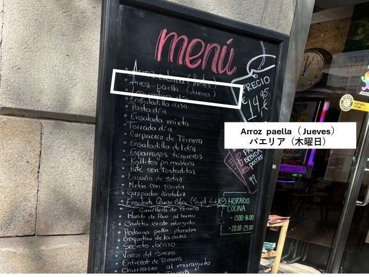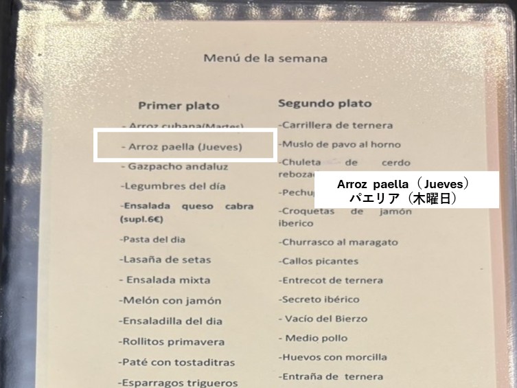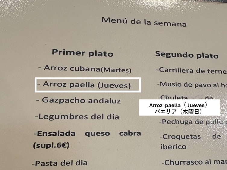 近所のレストランのメニューにも”パエリア(木曜日)”と書いてあります。