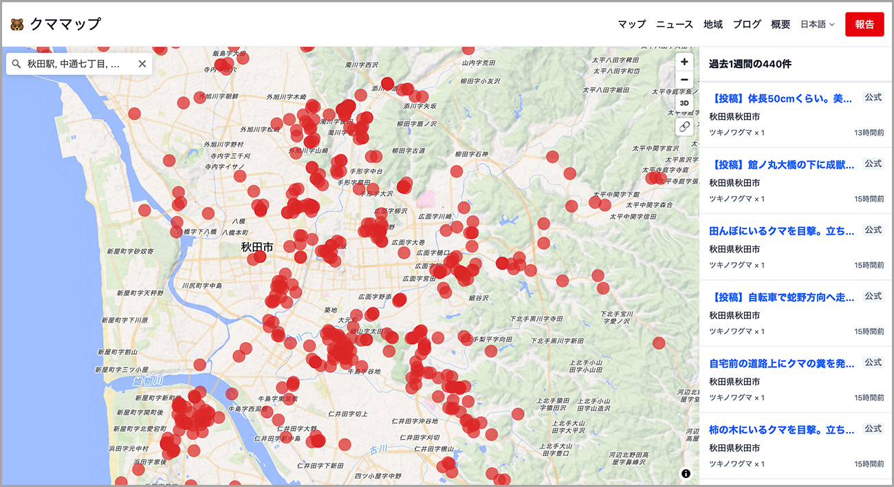 そんな中で注目されているのが、クマの出没情報を地図上で確認できる「クマ出没マップ」です。