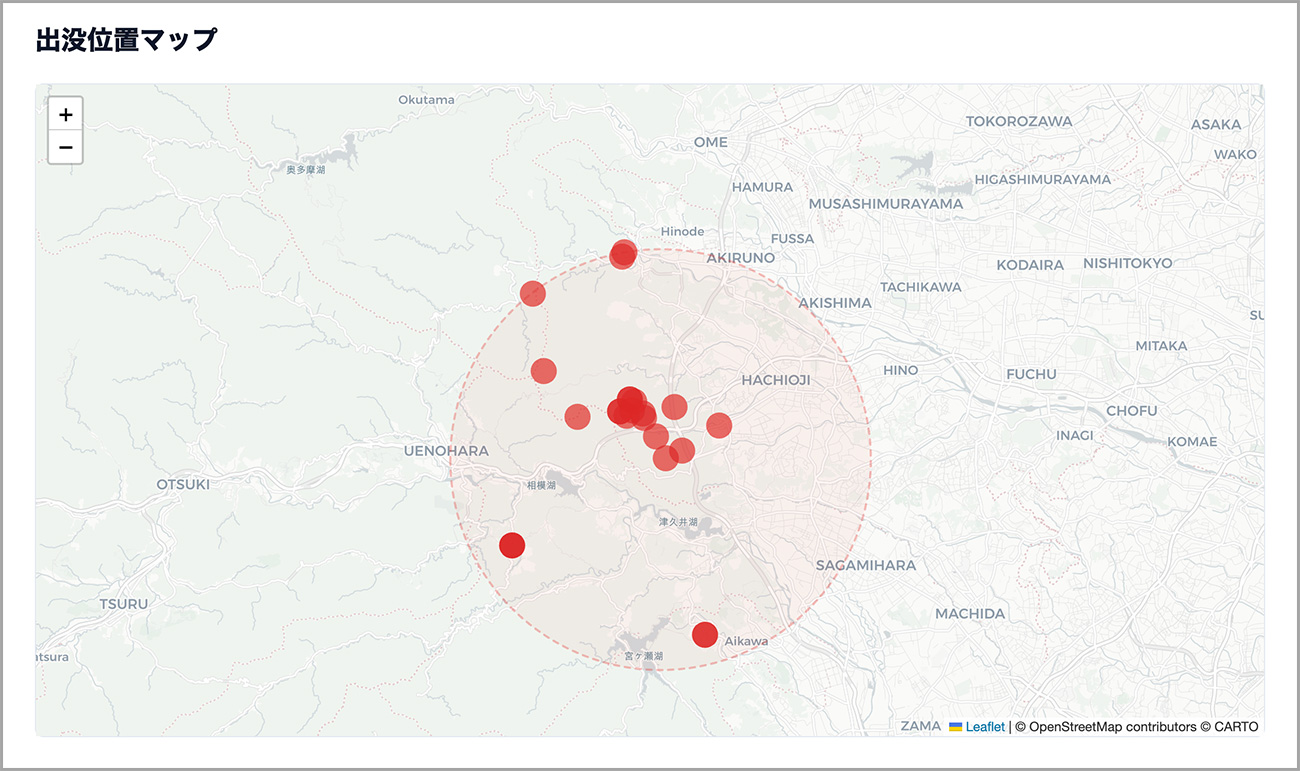 地図上では「どこで・いつ・どのような出没があったか」を視覚的に確認でき、地域や時期ごとにクマの活動傾向をつかむことが可能です。