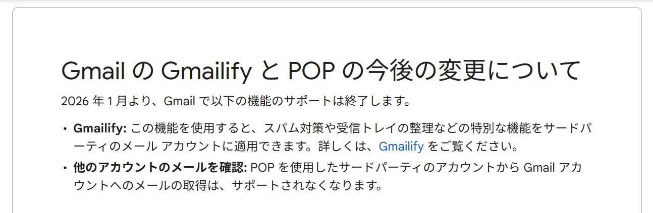 「Gmail の POP サポートが年内で終了」と聞いてもピンと来ない方は、ぜひ下記を参考にしてください。