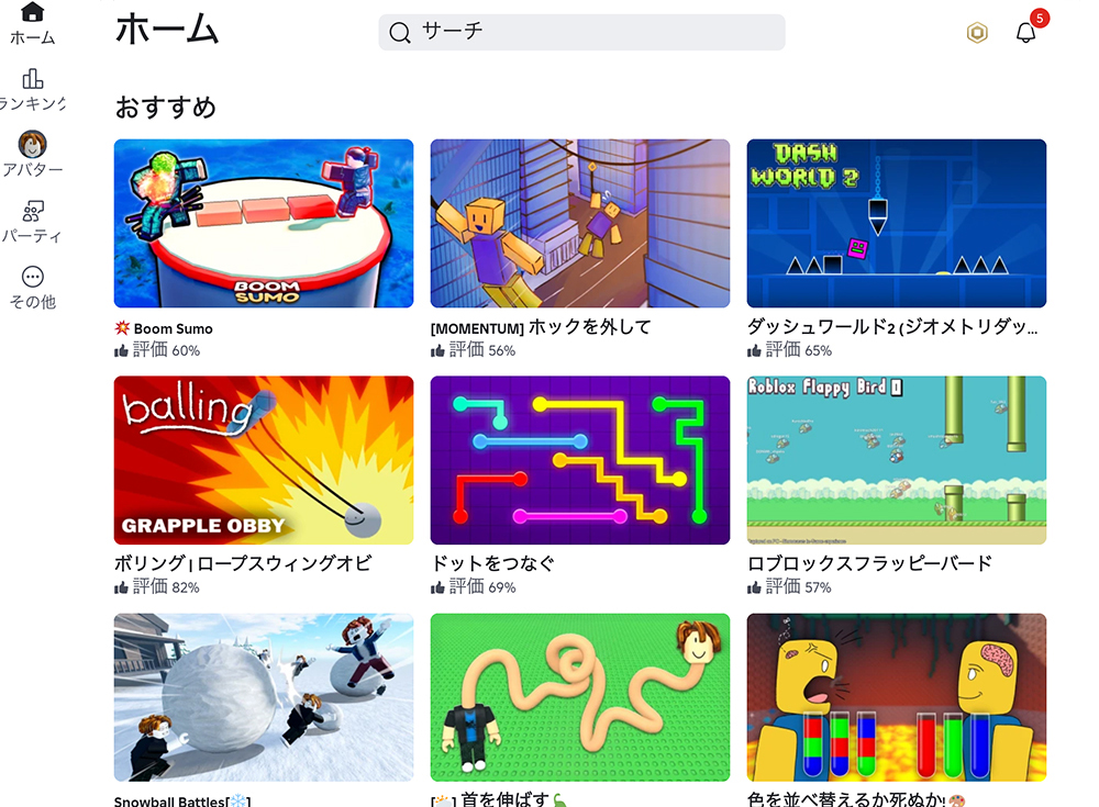 世界中のクリエーターが作ったゲームが大量に並び、ログインすればすぐ遊べます。
