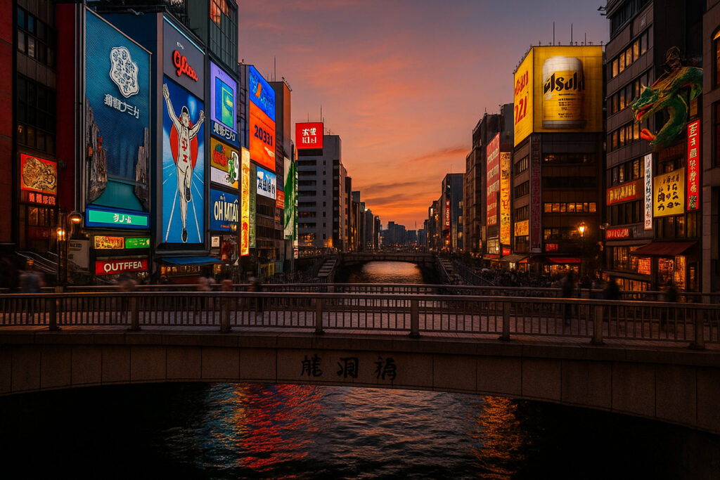 こちらは大阪の道頓堀橋の画像をChatGPTに生成してもらったものですが、よく見ると看板の文字がほとんど解読不能になっています。