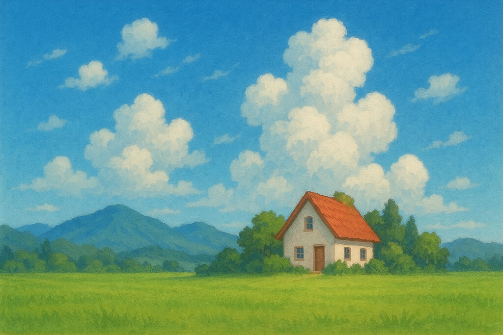 するとおそらくAIは「青い空と雲」を描く過程で、芝生や山、家など、プロンプトにない要素を勝手に保管してしまうことがあるでしょう。