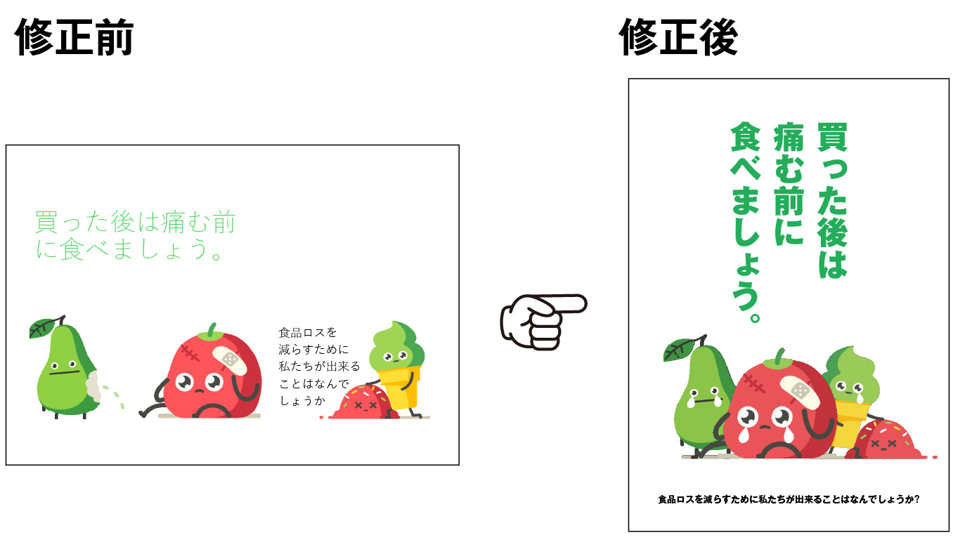 この修正例はビジュアルで見せたのでわかりやすかったようです