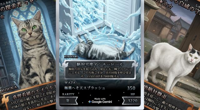 そのゲームとは、漫才コンビ・マヂカルラブリーの野田クリスタルさんが制作した「ペットカードジェネレーター」。ペットの写真をゲームのカード風に生成してくれるという内容で、Googleの生成AI「Gemini」を使って作ったのだそう。