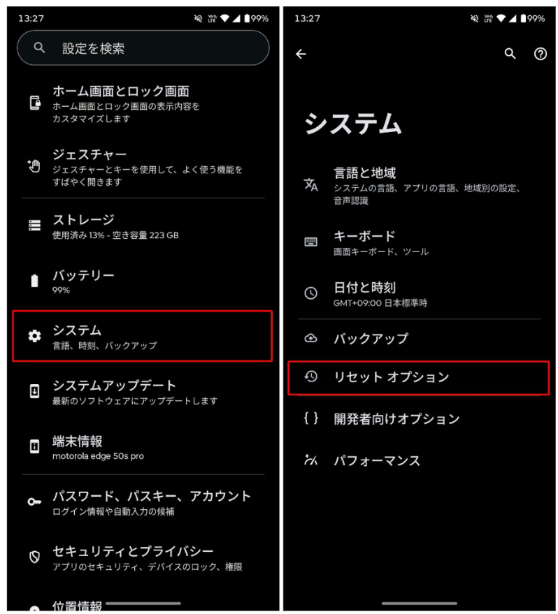 ここでは例として僕のmotorola edge 50s proの画面で説明します。