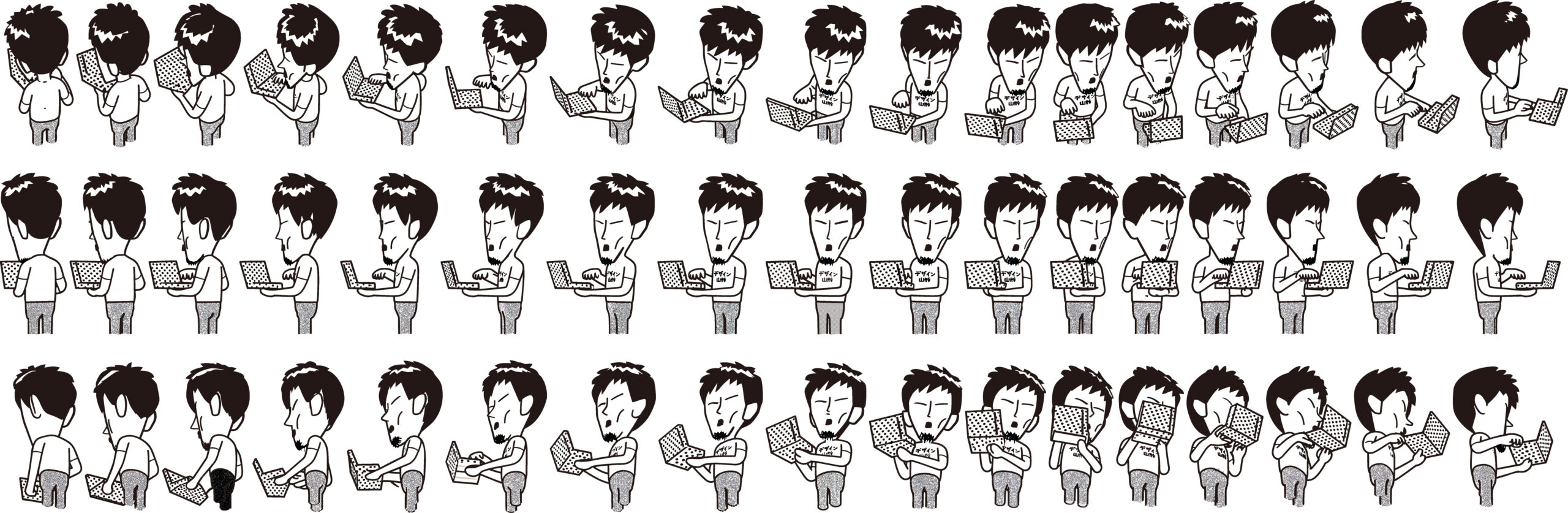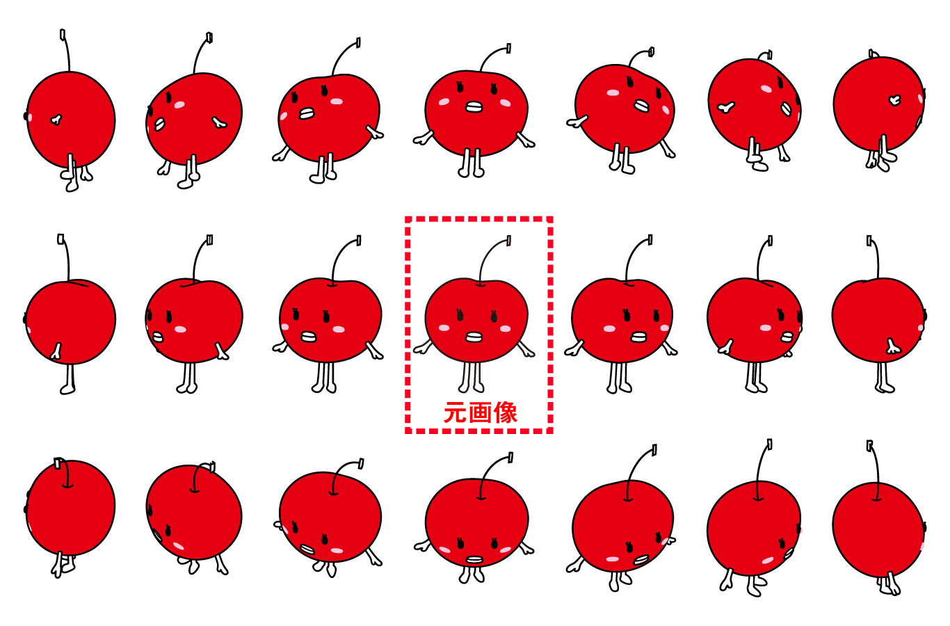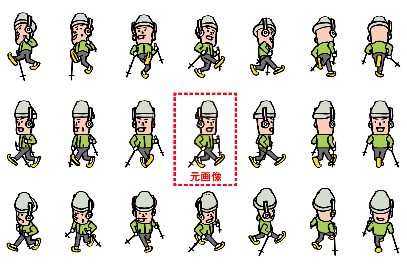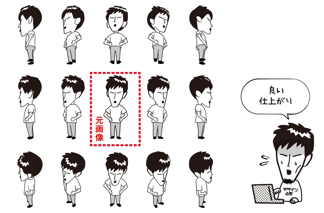 これまで正面のイラストしかなかったものが、横顔や後ろ向きのバリエーションまで一気に作れるようになりました