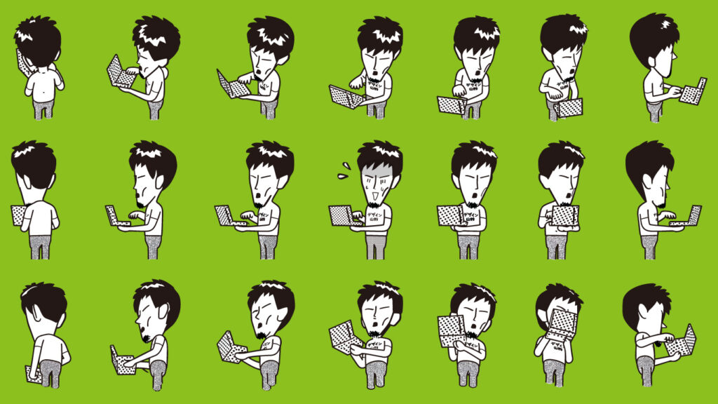 これまで正面のイラストしかなかったものが、横顔や後ろ向きのバリエーションまで一気に作れるようになりました