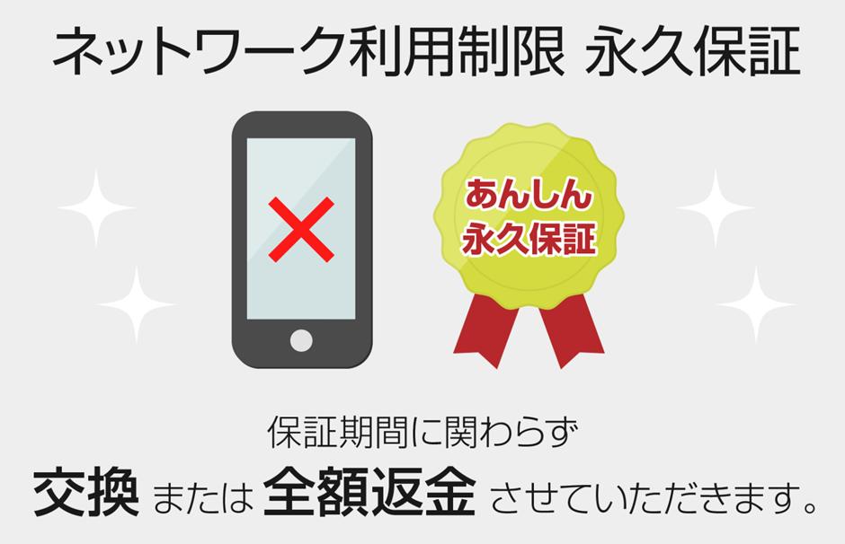 たとえば、創業25年以上の老舗スマホショップである「イオシス」ではネットワーク利用制限(赤ロム)を永久保証しており、保証期間にかかわらず交換または全額返金に応じてくれます。